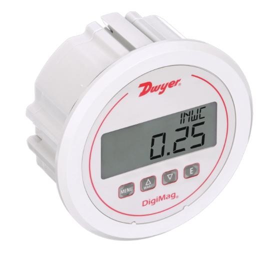 Der DigiMag® Serie DM-1000 Digitaler Differenzdruck- und Durchflussmesser überwacht den Druck von Luft und kompatiblen Gasen, genau wie sein berühmter analoger Vorgänger, der Magnehelic® Differenzdruckmesser. Alle Modelle sind werkseitig auf bestimmte Bereiche kalibriert. Das 4-stellige LCD kann Messwerte in gängigen englischen und metrischen Einheiten anzeigen, so dass keine Umrechnungen erforderlich sind. Die vereinfachte Bedienung mit vier Tasten reduziert die Einrichtungszeit und vereinfacht die Kalibrierung mit der digitalen Drucktasten-Nullpunkt- und Spannenfunktion.