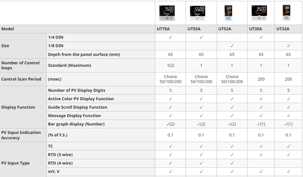Vergleichsdiagramm (UT75A/UT55A/UT52A/UT35A/UT32A)